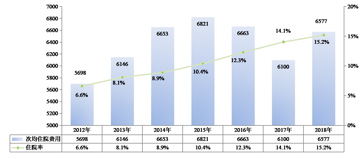 4、住院率和次均住院费用均上涨。居民医保参保人员住院率为15.2%,比上年提高1.1个百分点;次均住院天数9.3天,与上年持平;次均住院费用6577元,比上年增长7.8%。其中在三级、二级、一级及以下医疗机构的次均住院费用分别为11369元、5877元、3145元,分别比上年增长11.3%、6.1%、0.9%。