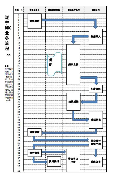 为加强我市基本医疗保险按病组点数法付费结算管理,规范医疗费用审核、结算、拨付流程,确保按病组点数法付费工作有序推进,现将《遂宁市基本医疗保险按疾病诊断相关分组(DRG)结合点数法付费业务经办规程(试行)》印发你们,请认真组织学习,严格遵照执行。