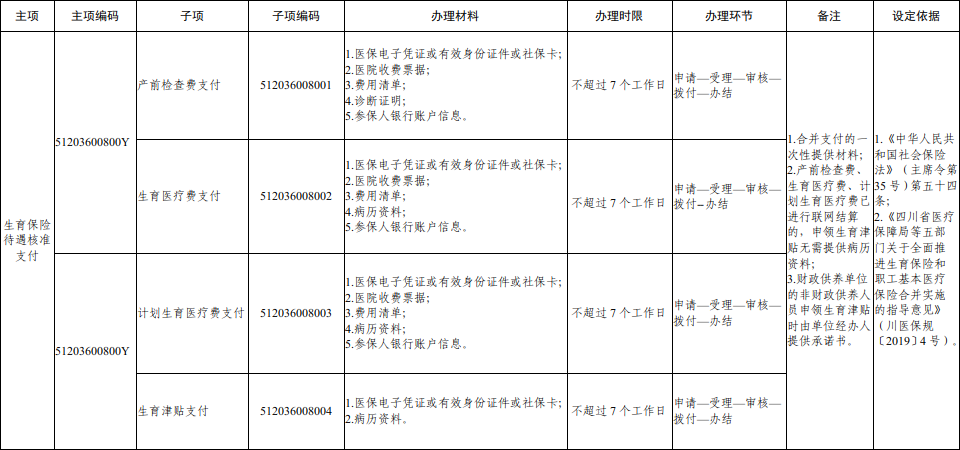 与产前检查费、计划生育医疗费、生育津贴合并支付的一次性提供材料。