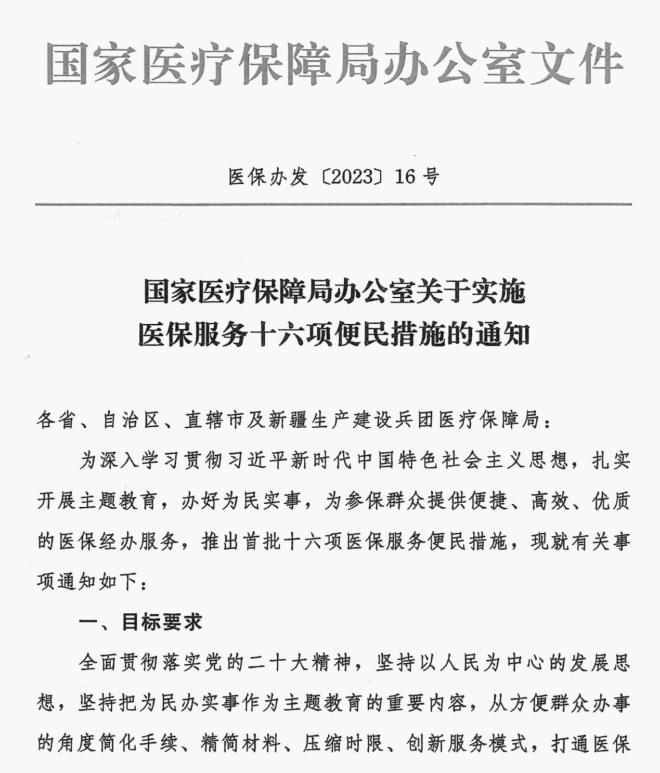 为深入贯彻落实医保系统“我为群众办实事”活动要求,持续提升医保经办服务标准化、规范化、便捷化水平,现将《国家医疗保障局办公室关于实施医保服务十六项便民措施的通知》(医保办发〔2023〕16号)转发你们,并结合我市实际提出如下贯彻落实意见,请一并遵照执行。