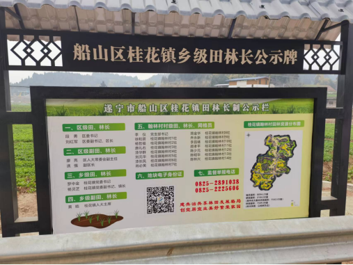 2022年底,船山区相继出台了《遂宁市船山区全面推行田长制实施方案》《关于设立区级田长、联系部门及区田长制办公室的通知》,建立起以区委、区政府主要负责人为区级田林长、16个县级干部为副田林长、14人为乡级田林长、81人为村级田林长、579人为基层网格员的“四级”田林长制体系,全面推动“田林长制”各项举措落地落实。