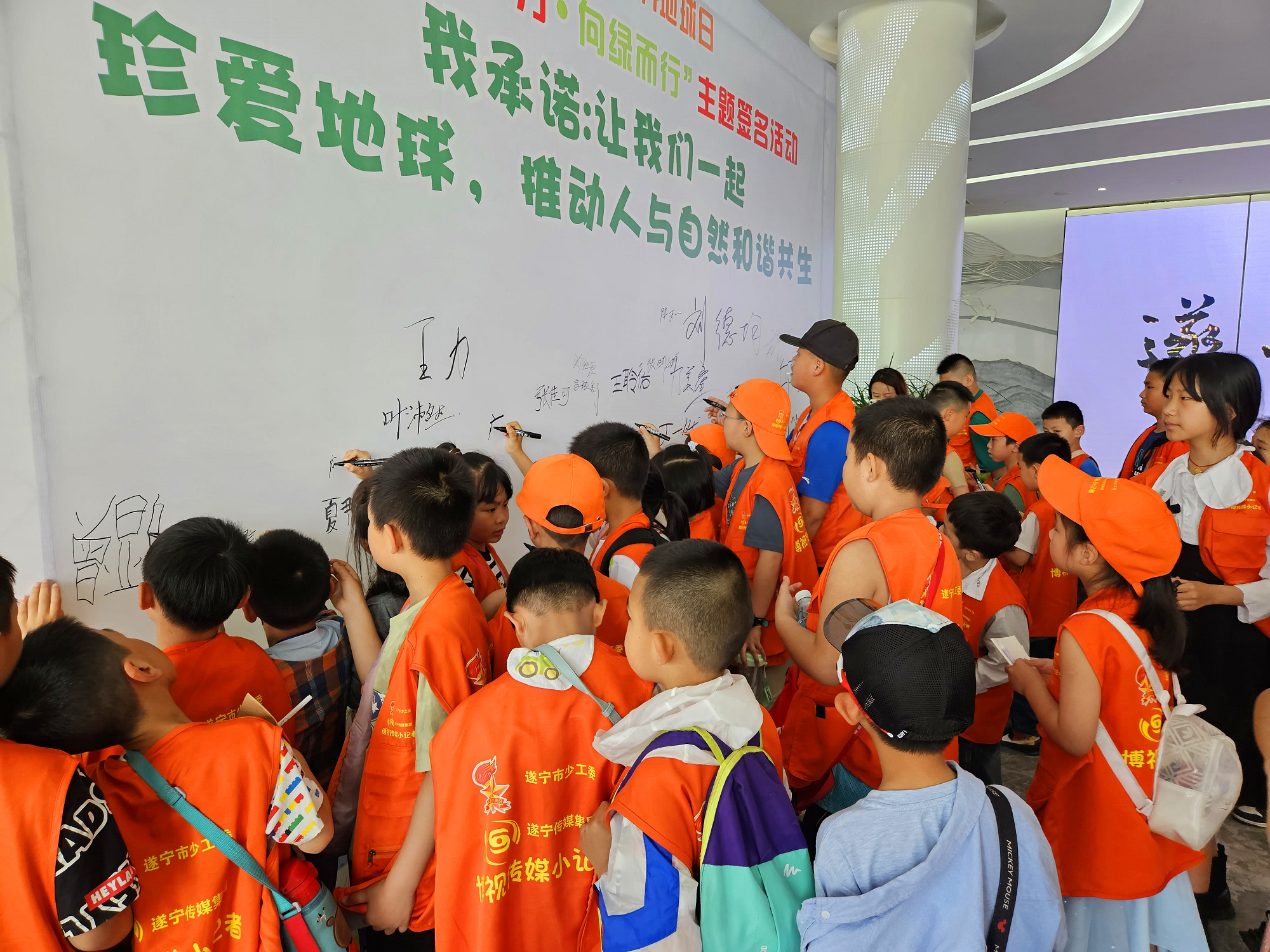 当天,60余名小记者来到安居区三家大米现代农业园区、遂宁市规划馆,通过寓教于乐的方式,引导青少年树立爱护地球、保护家园的意识,呼吁大家在生活中践行环保理念,为改善地球环境、“绿色遂宁”发展做出力所能及的贡献。