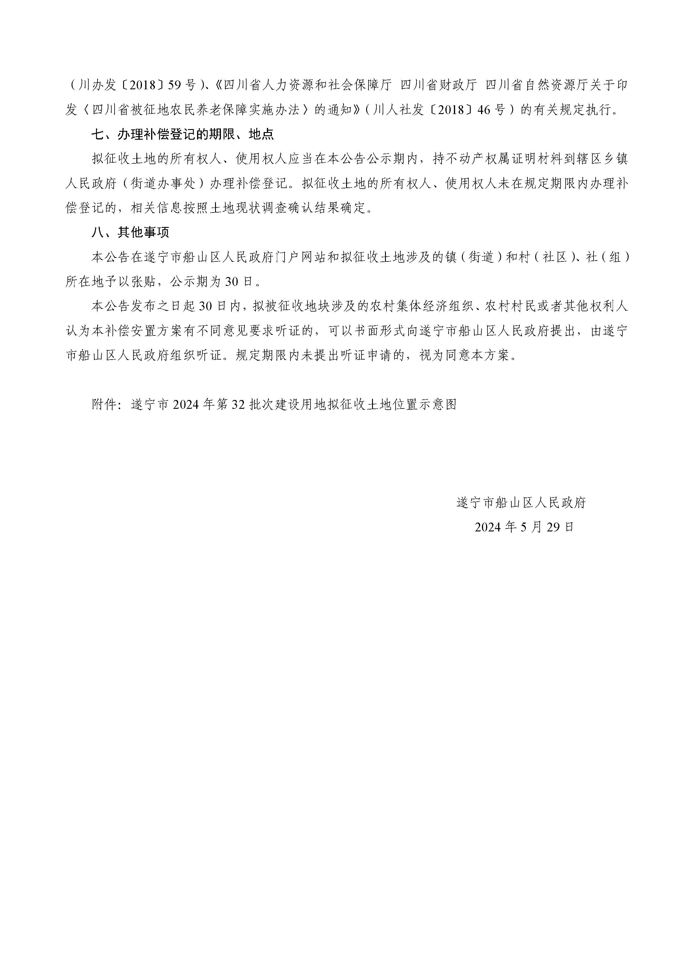 遂宁市船山区人民政府关于遂宁市2024年第32批次建设用地征地补偿安置方案的公告 (遂船府公〔2024〕34号)