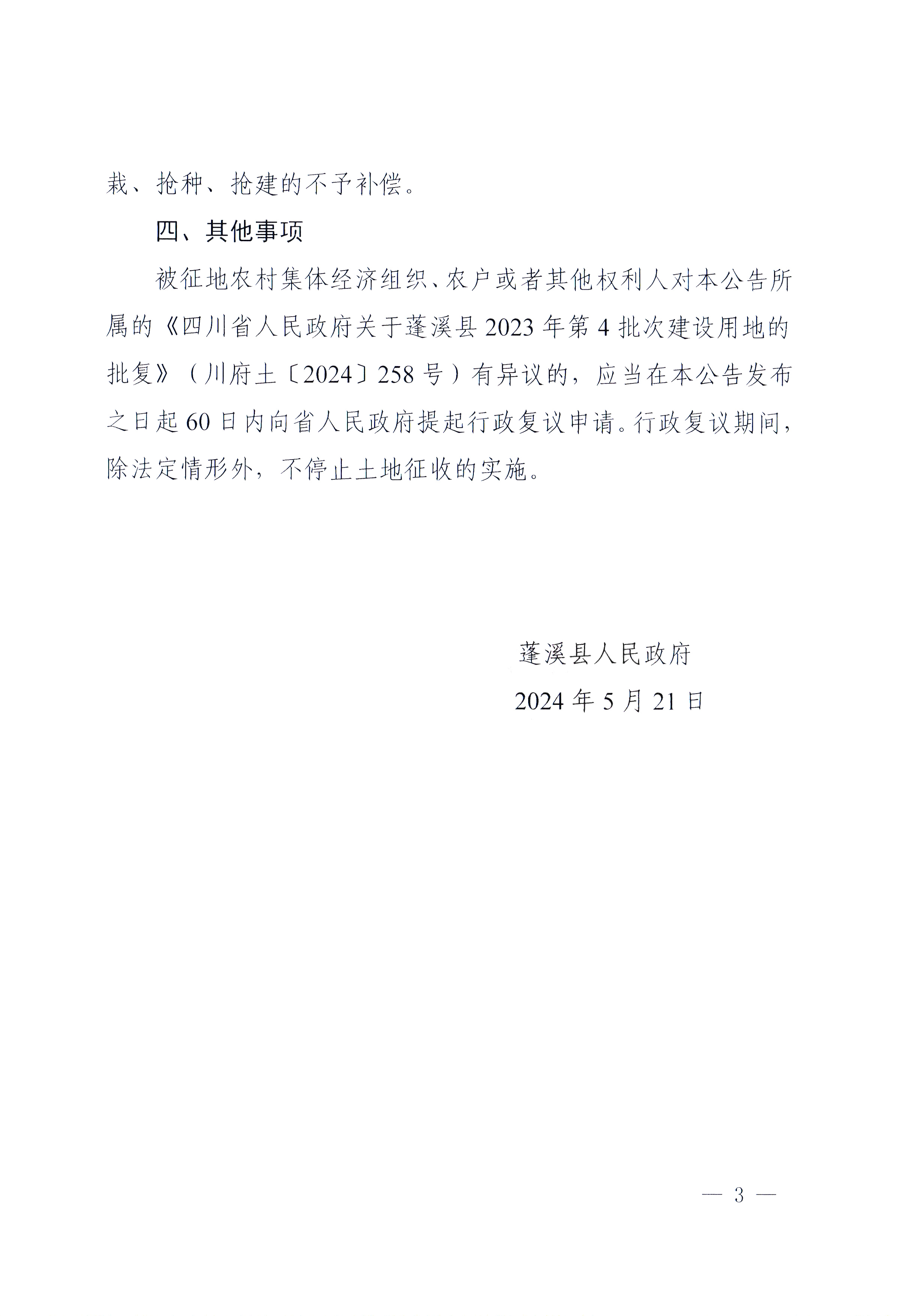 蓬溪县人民政府征收土地公告(蓬府公〔2024〕10号 )