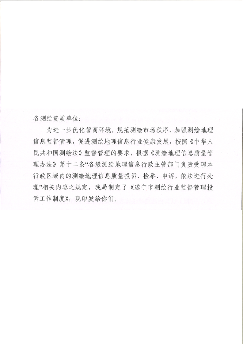 关于印发《遂宁市测绘行业监督管理投诉工作制度》的通知