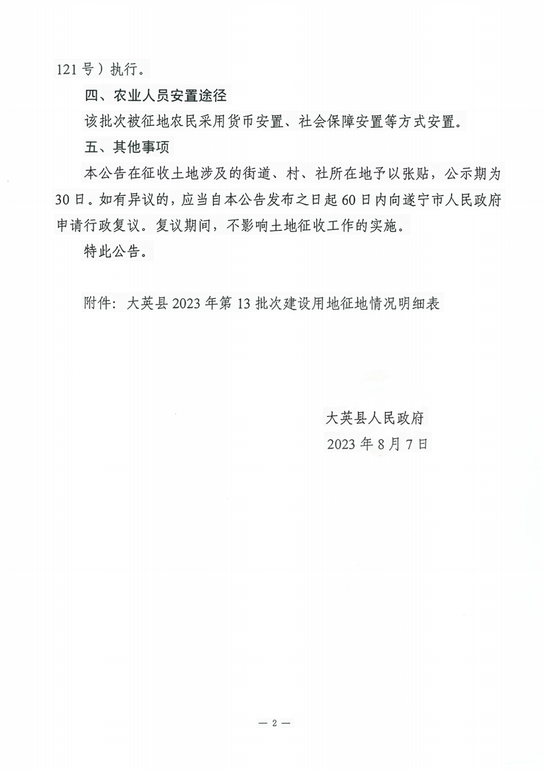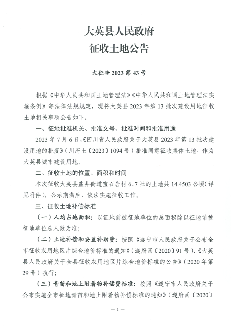 大英县人民政府征收土地公告(大征告2023第43号)