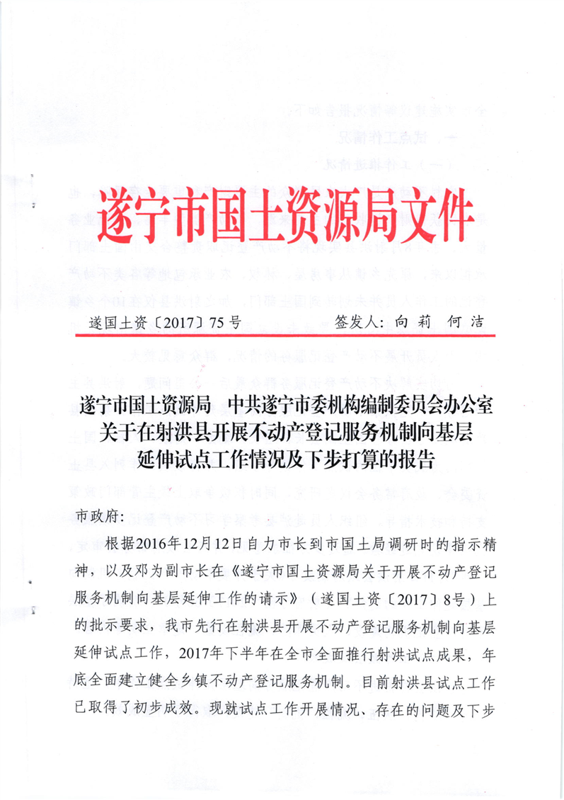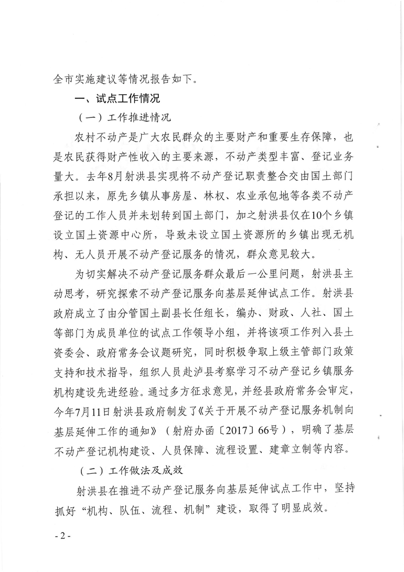 关于在射洪县开展不动产登记服务机制向基层延伸试点工作情况及下步打算的报告