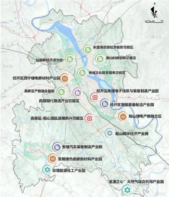 四是引导产业功能聚集。集中在遂宁经开区南强片区、遂宁高新区南片区、船山区循环产业园区、安居区经开区、遂潼之心片区作为产业拓展空间;引导商务、金融等楼宇经济向河东永盛湖中央活力区集聚,产业类服务中心平台向南强核心区集聚,打造环湖城市品质展示的核心功能区。