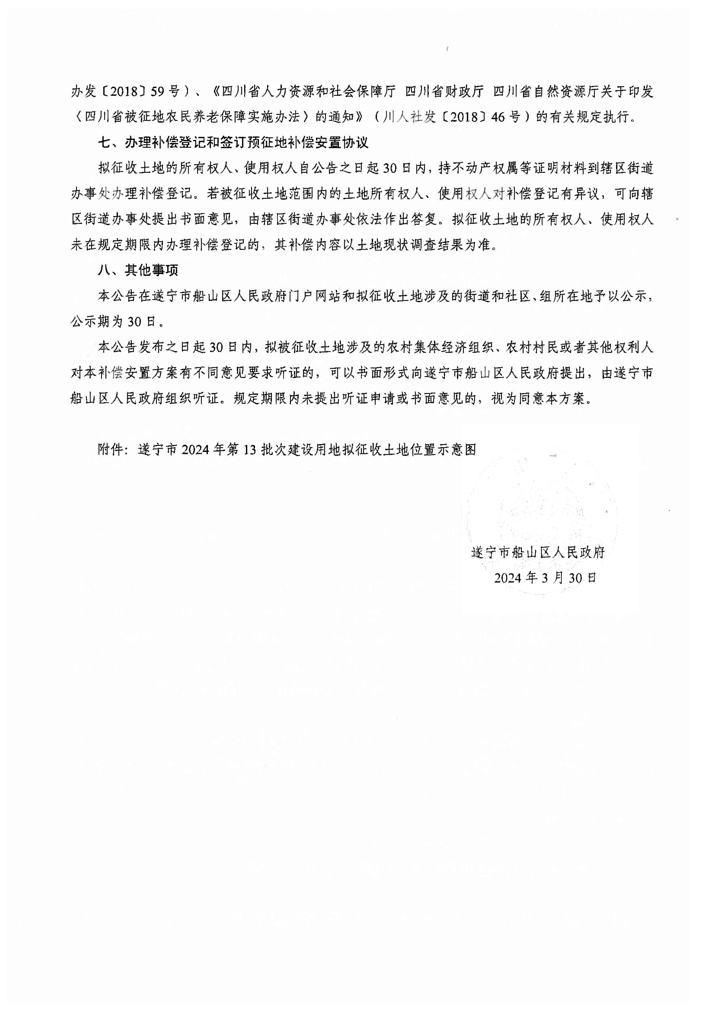 遂宁市船山区人民政府关于遂宁市2024年第13批次建设用地征地补偿安置方案的公告 (遂船府公〔2024〕13号)