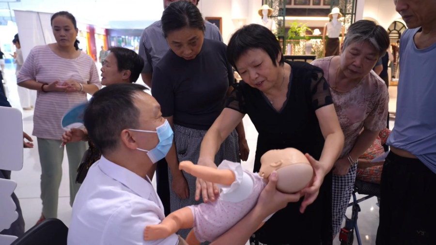 此外,医务工作者开展现场教学,详细演示了溺水急救法、海姆立克急救法等,并邀请市民参与互动体验,进一步强化应急救治能力。