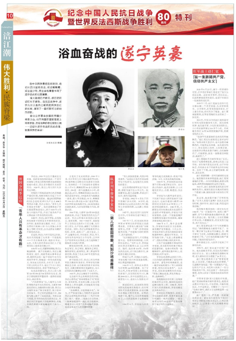 自幼立志革命救国的开国少将李泛山、壮烈殉国的国军陆军上将李家钰、历经沧桑的老红军赵仁宽……这些从遂宁走出的抗战英雄,就是民族的脊梁!
