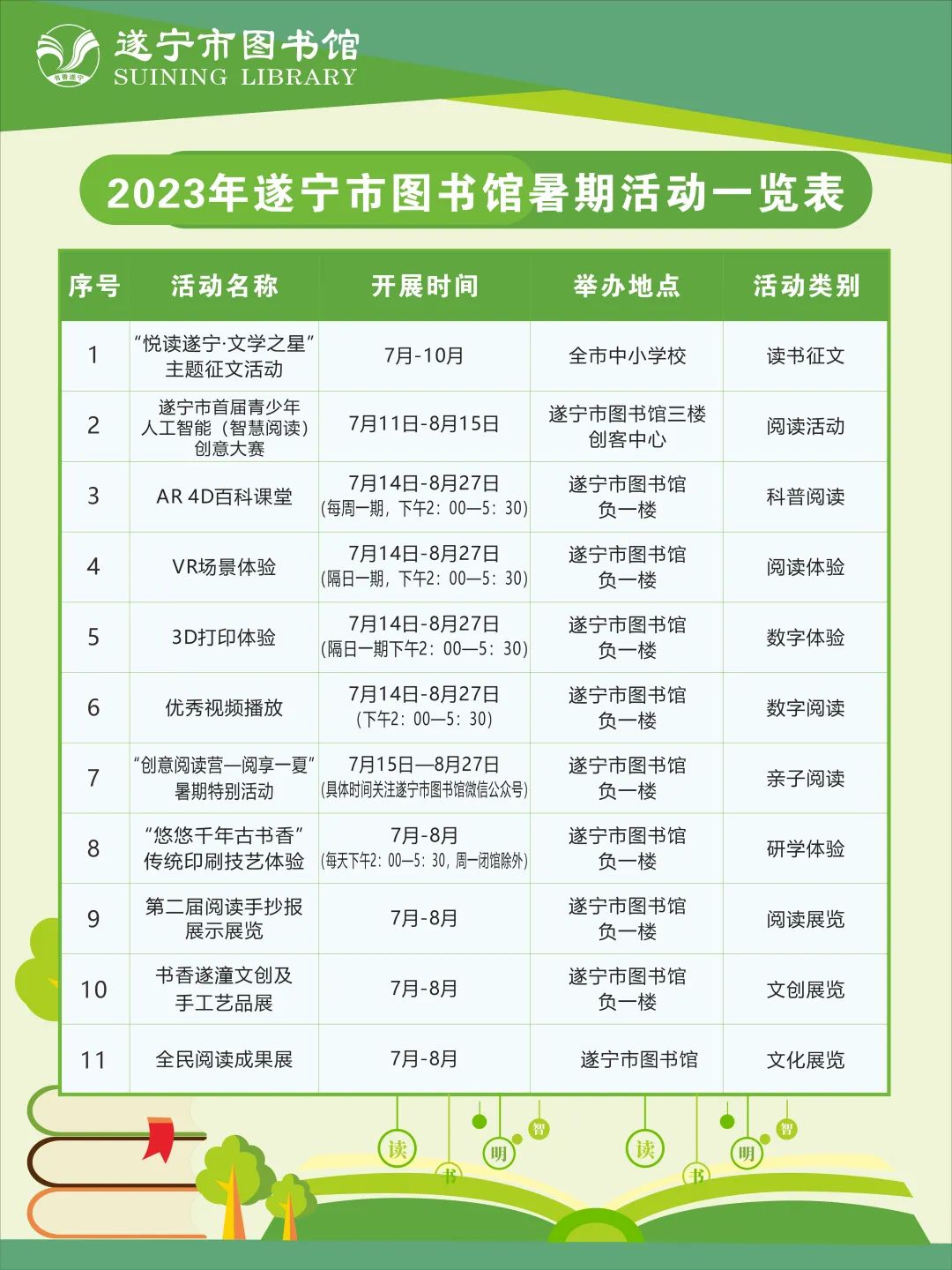 2023年遂宁市图书馆暑期活动一览表