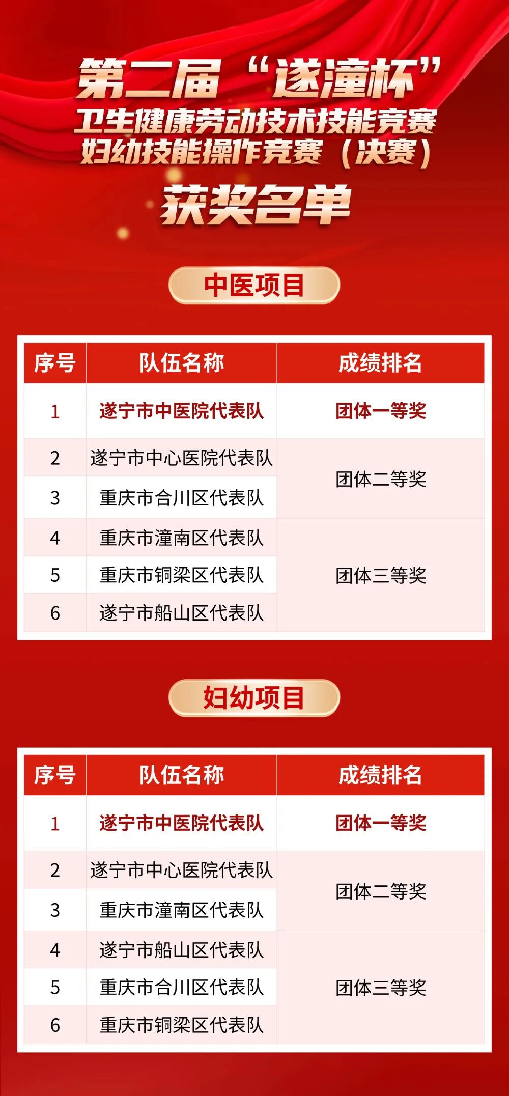 经过一天的激烈角逐,决赛最终评选出了团体一、二、三等奖。遂宁市中医院代表队分别获得中医技能操作竞赛和妇幼技能操作竞赛一等奖。