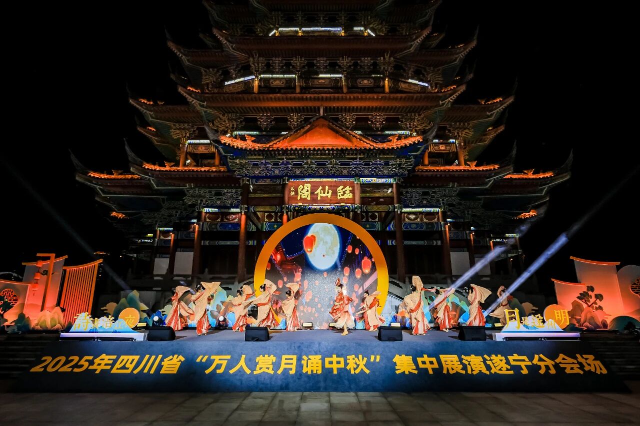 传统文化带来的遂宁中秋“浪漫”还有很多。它还藏在“月满湖庭·国韵乐游会”中,月光与荷香交织着绵延意境;还藏在“2025年四川省‘万人赏月诵中秋’集中展演暨遂宁分会场”中,乘船夜游、观看表演,举头望明月,月是遂州明。