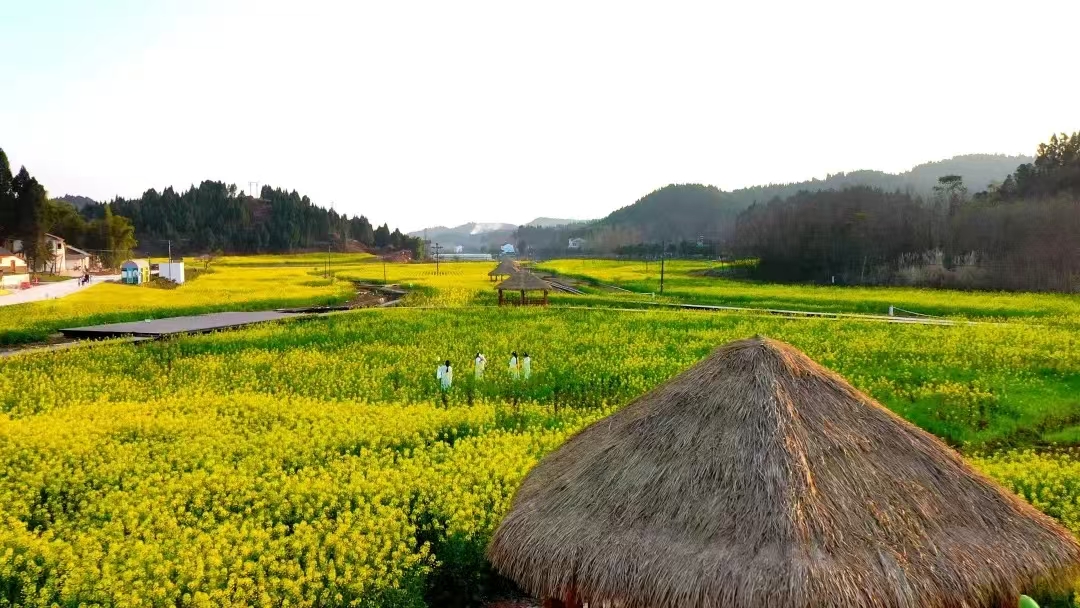 318国道上的遂宁市安居区海龙村,曾经是一个沼气建设大村。如今,海龙村依托中国沼气博览园建设,大力发展生态循环农业和农旅产业,村里游客络绎不绝。目前,安居区海龙凯歌农文旅园区内的万亩油菜花开得正盛,随手一拍就是大片。