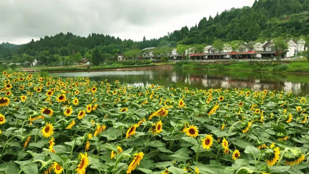 318国道上的遂宁市蓬溪县牛角沟村,因山沟形似牛角而得名。牛角沟村以“中国·四川红军第一村”红色景区为建设载体,涵盖了蓬溪烈士事迹陈列馆、旷继勋牛角沟起义纪念碑、民间收藏馆等重要场所。夏天,120余亩的向日葵花海将把牛角沟村变成一片金色海洋。