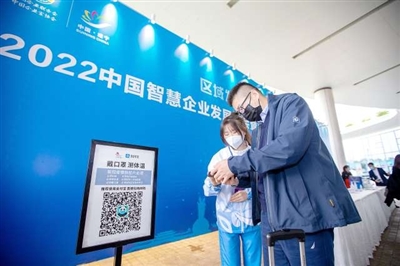 在大会报到处,参会嘉宾领取会议材料后均现场采集核酸,同时配合工作人员进行“一测一扫三查验”。为确保嘉宾顺利报到,我市在现场设置了报到组、疫情防控组、住宿安排组。