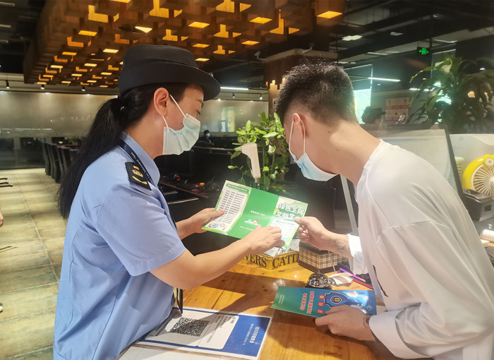 在市河东新区万达广场渔人网吧,联合检查组详细检查了网吧实名登记台账及疫情防控登记台账,要求网吧经营人员要净化上网环境,为文化市场的和谐、稳定、健康出力,使文明上网常态化、持久化,进一步提高守法经营意识,为辖区群众创造良好的上网安全环境。