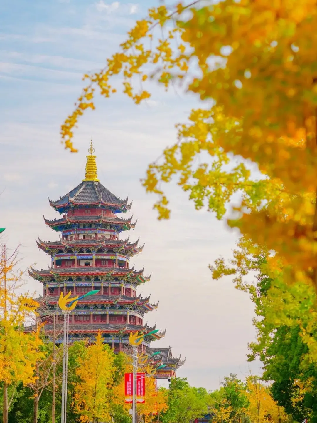 古色古香的临仙阁与泛着金光的银杏交相辉映,暖黄的银杏叶与同为暖色的建筑配合,给这个岁末的寒冬季节增添了融融暖意。