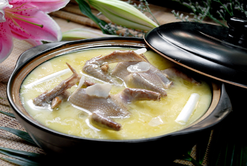 大菜最具有特色,代表菜品有甲鱼汤、虫草鸭、龟鸽汤等,也有天麻鸽子,带丝鸭、珍菌鸡等中档菜品,当然还有鲫鱼水饺等特色小吃等