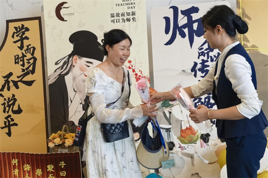 最后,教师们还得到了节日的小惊喜——一朵康乃馨。她们手持花与灯,脸上有笑,眸中有光——那是被尊重与理解照亮的欣慰,更是对教育之路始终如一的热爱与坚守。