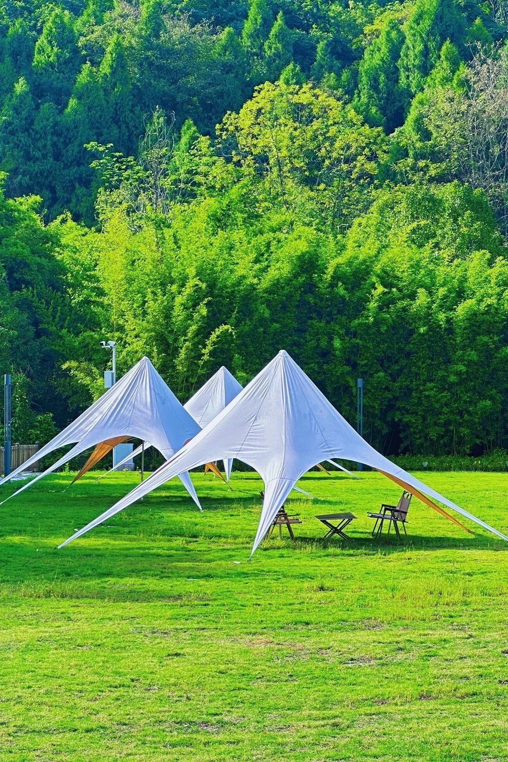 藏在中环线上,不仅有超大草坪,还可以打羽毛球、在营地旁边玩紧张刺激的山地车,玩累了躺在帐篷里看书休息,围炉煮茶煮红酒、烧烤,特色罐罐鸡是必点菜品。夜幕降临,伴随着星星点点的灯光看户外电影,一秒回到童年时代。