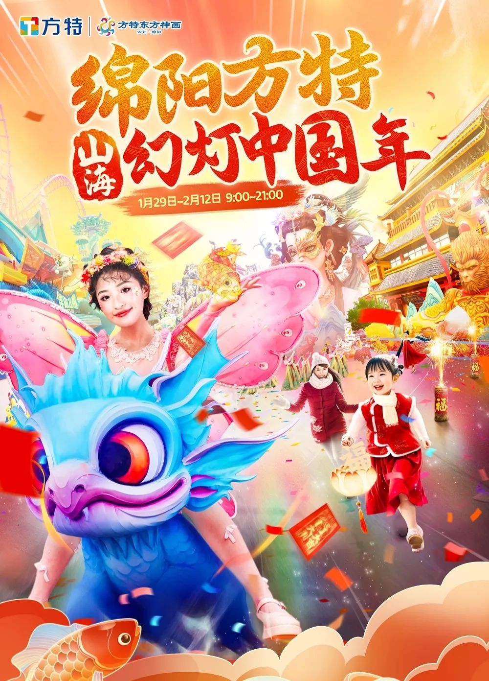 位于绵阳江油的绵阳方特东方神画将开启山海幻灯中国年,春神画山海主题灯展,享受一场视觉盛宴,非遗演出火龙钢花、高桩舞狮,体验传统文化的独特魅力。
