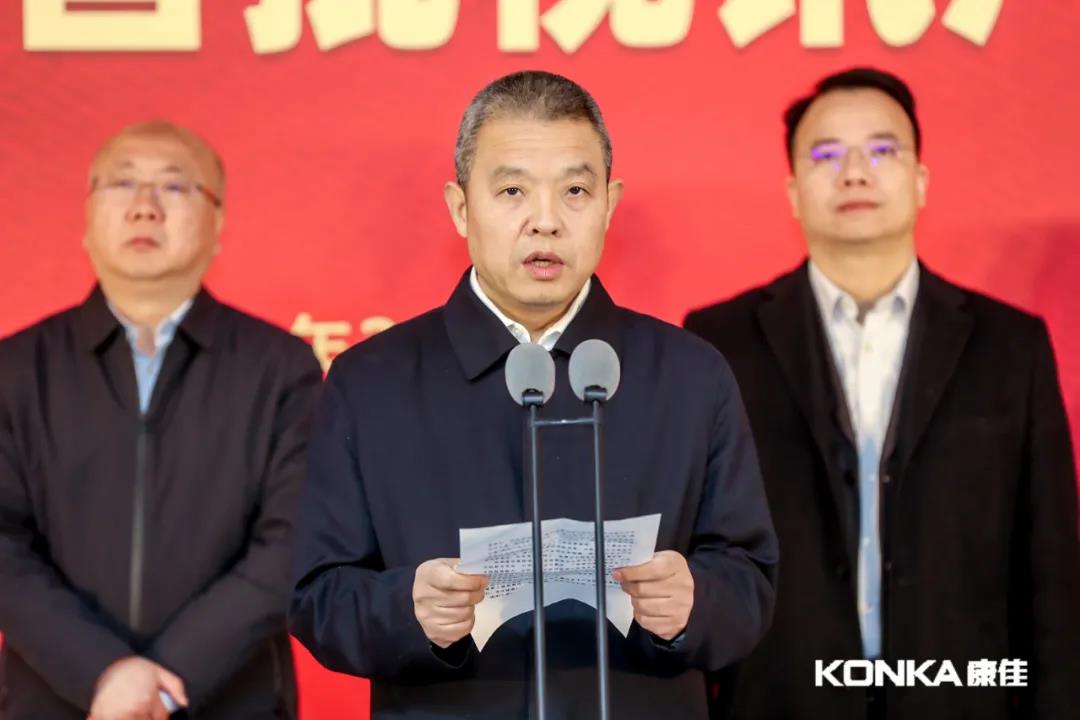 2月28日上午,在位于遂宁经开区内的遂宁康佳产业园里,康佳“遂宁造”首批视讯产品正式下线。市委常委、市委政法委书记、市总工会主席朱华宣布康佳“遂宁造”首批视讯产品下线。