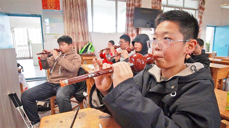 一旁的教学楼里,音乐老师为同学们讲解葫芦丝按孔方法、演奏姿势、气息运用等基础知识,并示范吹奏《彝乡谣》等经典曲目,带领同学们亲身感受民族音乐魅力。“此次秋假托管为期2天,学校为同学们设置了丰富多彩的活动。”托管班班主任吴秋玉介绍,活动课程涉及无人机、葫芦丝、足球、篮球、陶艺等方面,通过这些课程实施,进一步丰富孩子们的托管生活。
