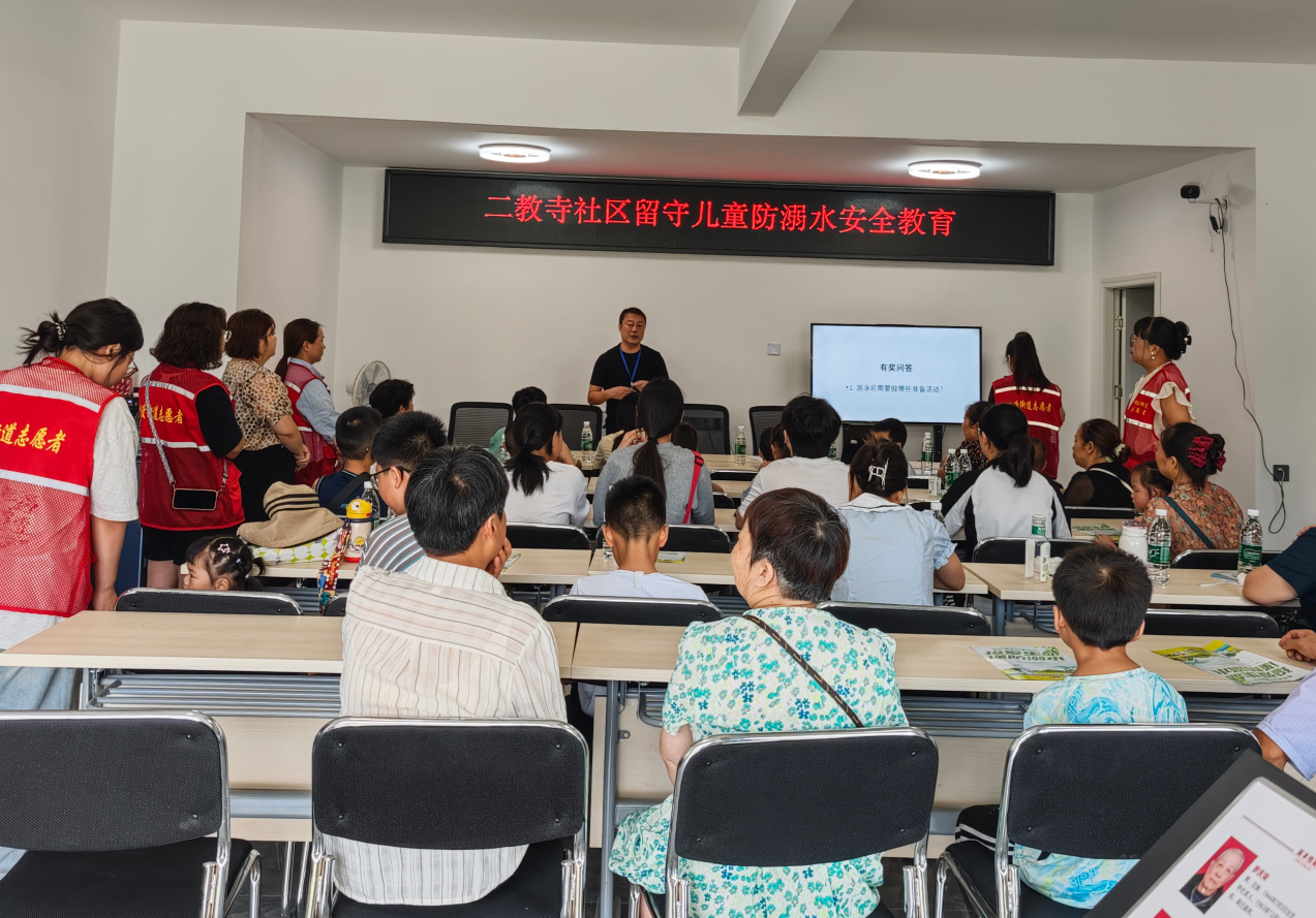 “小朋友们,没有大人陪同,能私自去河边玩耍吗?”“如果看到同伴落水,我们应该怎么做呢?”。近日,杨渡街道联合10个社区,针对辖区青少年(尤其是留守儿童)开展了多场防溺水安全教育课堂。课堂上,志愿者通过动画短片、情景模拟、互动问答等孩子们喜闻乐见的方式,深入浅出地讲解了“远离危险水域”“溺水自救技巧”“科学施救方法”等知识,并重点强调了“六不”准则,即不私自下水、不擅自结伴游泳、不在无家长或老师带领的情况下游泳等核心内容,引导孩子们将安全意识真正“刻入脑海”。自课堂开展以来,累计覆盖青少年及家长300余人,发放安全手册300余份,以“教育孩子、带动家庭、辐射社区”的联动效应,筑牢暑期安全防线。
