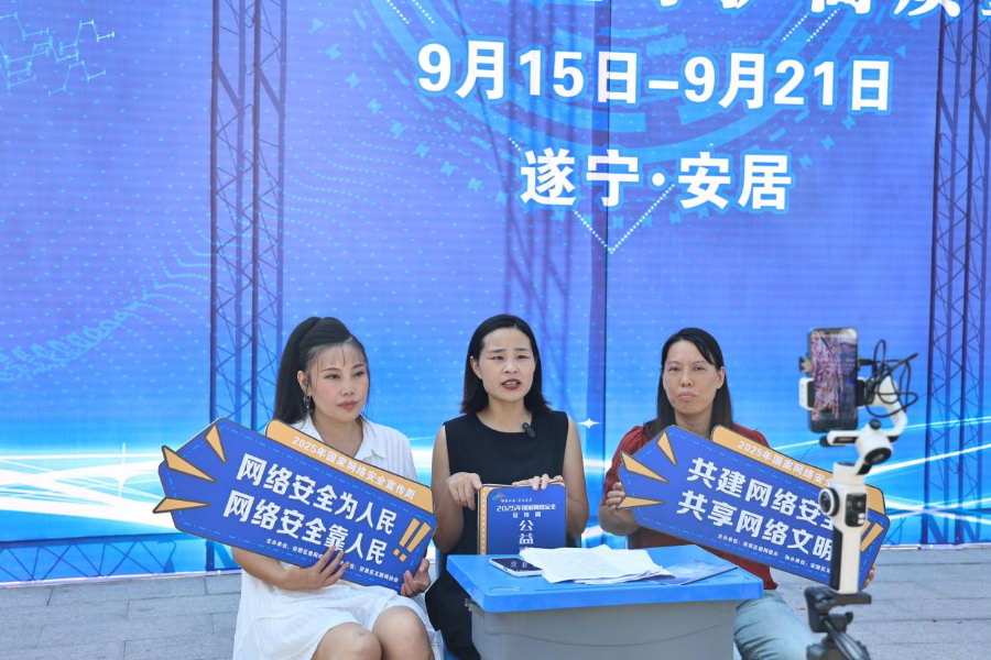 9月15日至21日是国家网络安全宣传周,9月15日,安居区2025国家网络安全宣传周活动在安居区头陀寺广场启动。本次宣传周的活动主题为“网络安全为人民,网络安全靠人民——以高水平安全守护高质量发展”,创新采取“线上+线下”联动、“户外+室内”直播互动模式,扩大宣传覆盖面,增强群众参与感。