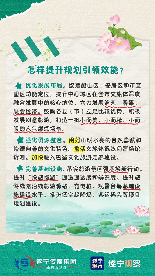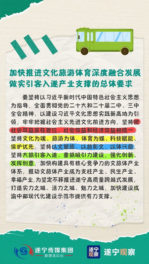 中共遂宁市委八届十一次全会审议通过的《中共遂宁市委关于加快推进文化旅游体育深度融合发展、做实引客入遂产业支撑的决定》发布。加快推进文化旅游体育深度融合发展,遂宁怎么做?怎样提升城市品牌知名度和影响力?一组手账带你看↓↓↓