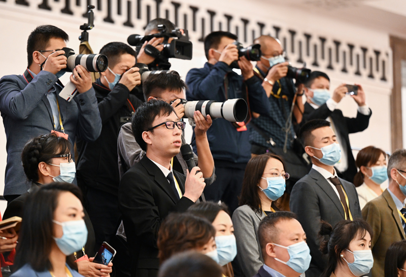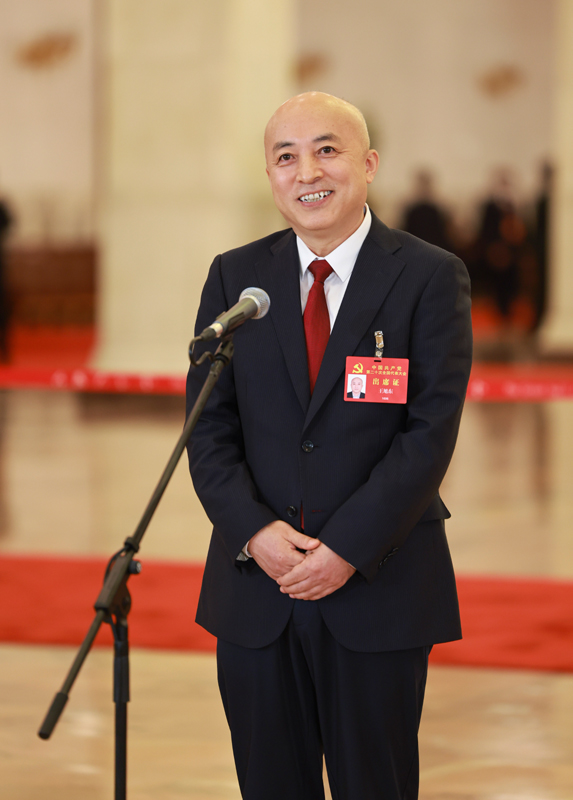 这是开幕会前,王旭东、钱素云、谢春涛代表(自左至右)接受采访。