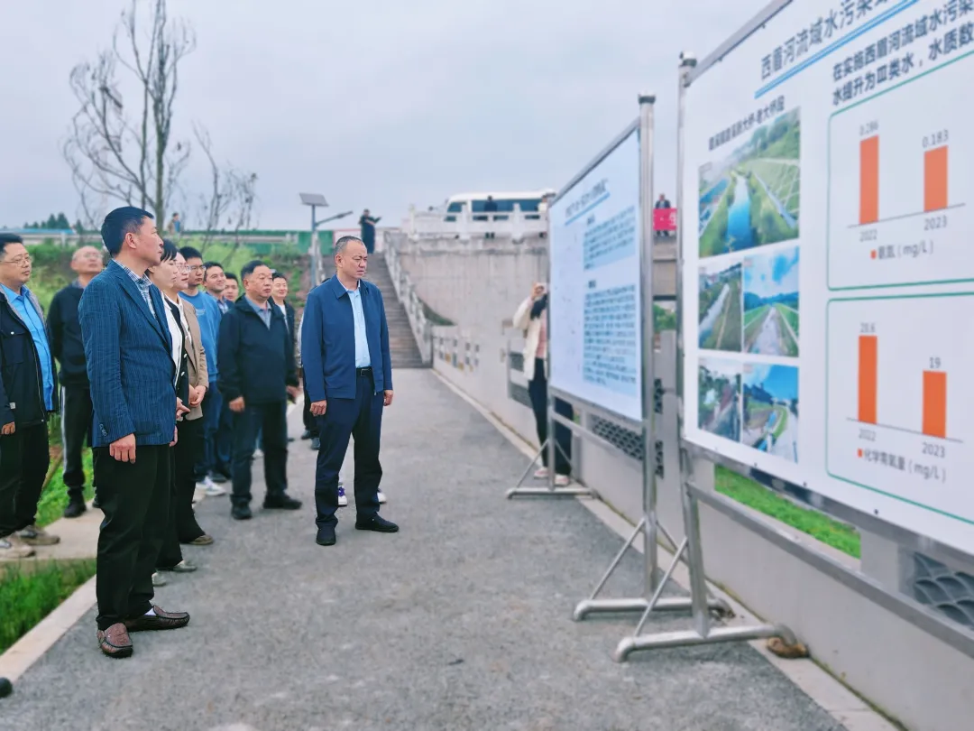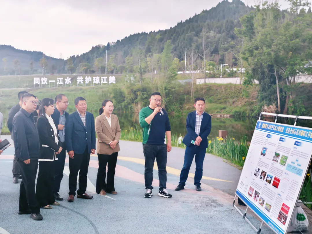 与会人员一行还前往了安居区磨溪镇新大桥和凤凰栖公园,调研西眉河水生态修复项目和琼江流域水污染治理工作。