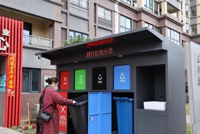 “给市民提供了方便,丢了垃圾还能洗手。”市民詹艳英说。 御书苑小区几乎每一栋楼下都配备了四分类垃圾亭,以满足每栋楼百余户居民的垃圾投放需求。相比于以前的垃圾桶,四分类垃圾亭更智能更干净,使用起来更方便。“小区的垃圾亭从年前开始投用,垃圾亭还自带声控灯。”御书苑小区物业经理刘洋说。