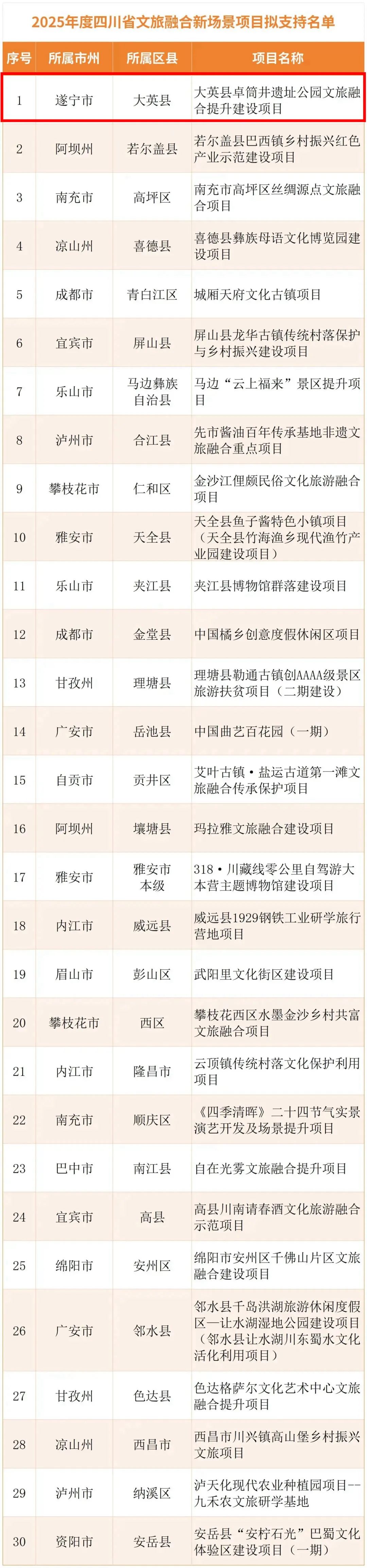 2025年度四川省文旅融合新场景项目拟支持名单