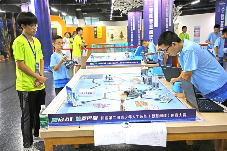 9月13日,2025川渝第二届青少年人工智能(智慧阅读)创意大赛总决赛在遂宁市文化中心举行。本次大赛由省图书馆、重庆图书馆、市文化广电体育旅游局联合主办,来自川渝两地20余个城市的82名选手同场竞技,以科技为笔,绘就智慧阅读新图景。