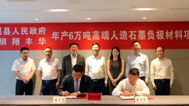 据悉,深圳翔丰华科技股份有限公司是一家集研发、生产和销售高端锂离子二次电池用石墨、硅碳等负极材料和石墨烯应用为一体的高新技术企业。本次落地蓬溪经开区(金桥片区)的高端人造石墨负极材料一体化生产基地建设项目,占地400亩,总投资12亿元,项目从对接到签约落地仅用时36天,创造了招商引资蓬溪速度。