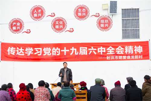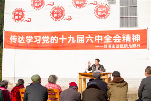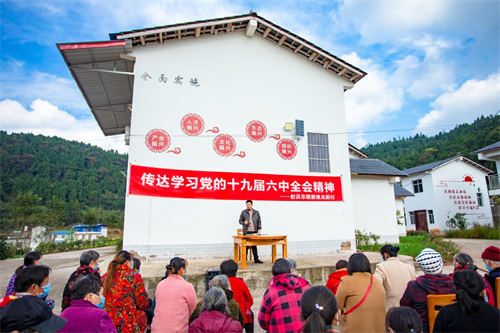 11月17日,射洪市明星镇驻村干部在龙胆村村民聚居点给当地老百姓传达党的十九届六中全会精神。连日来,该镇通过院落坝坝会、驻村干部定点、领导干部包片等多种形式,把党的十九届六中全会精神送到千家万户。