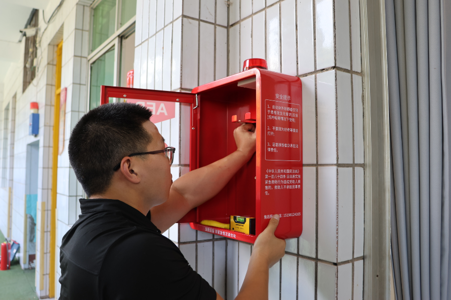 蓬溪县吉祥镇社会事务和社会治理办公室主任刘月雪介绍,在硬件建设方面,目前已完成两个房间的电路整修及墙面粉刷等基础工程;定制的储物柜已安装到位,广告上墙工作已全部完成,AED(自动体外除颤仪)已安装到位,项目整体形象初步显现;设备采购方面,已确定“博爱小屋”所需配备的轮椅等物品及器材供应商,目前项目进度已完成80%。