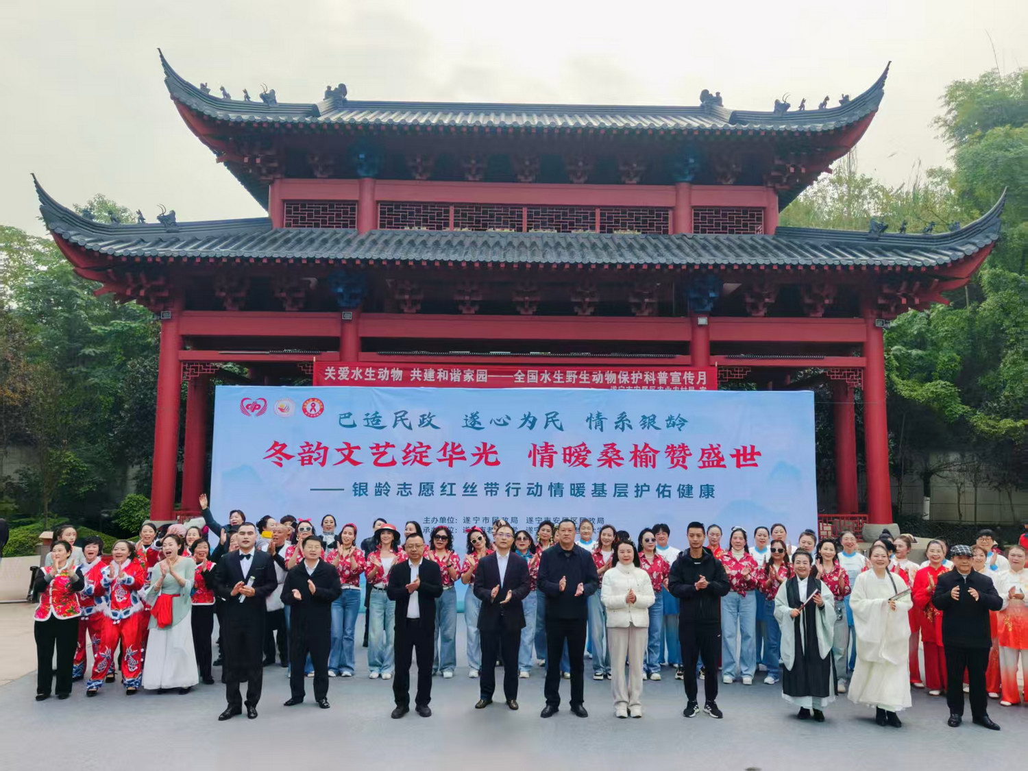 12月1日,由遂宁市民政局、安居区民政局主办,市老年大学、安居区老年大学联合承办的“遂州银发先锋送文化下乡”活动在安居区头陀寺广场正式启动。此次活动旨在充分发挥老年人的经验与智慧,传承和弘扬尊老、敬老、爱老、助老的传统美德,进一步丰富基层群众特别是农村老年人的精神文化生活。
