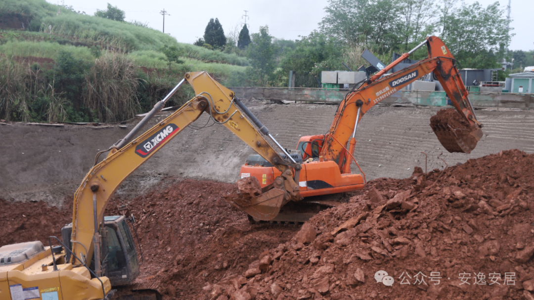 在安居区滨江南路城市污水处理厂,现场一片繁忙景象。挖掘机轰鸣作响,运输车辆往来穿梭,施工人员正紧张有序地进行着各项作业。目前,该污水处理厂已完成新建调节池基坑支护桩以及部分边坡喷锚支护等施工工作。