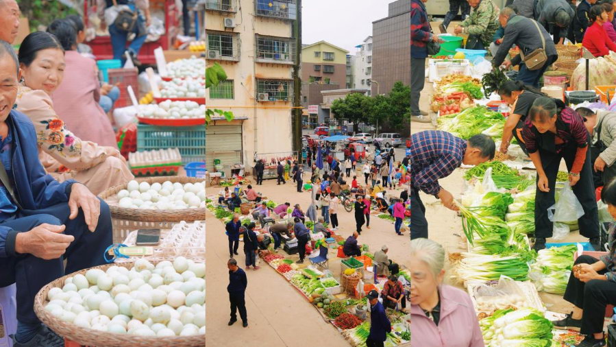 “以前路边摆摊没保障,现在有了免费固定摊位,客流还多,心里踏实。”10月17日清晨,安居区头陀寺便民服务点内,摊主张玉芳一边摆放新鲜鸭蛋,一边向记者分享喜悦。此时的服务点里,彩钢棚整齐排列,蔬菜、禽蛋等商品琳琅满目,市民穿梭采购,人声鼎沸间满是热闹的烟火气。