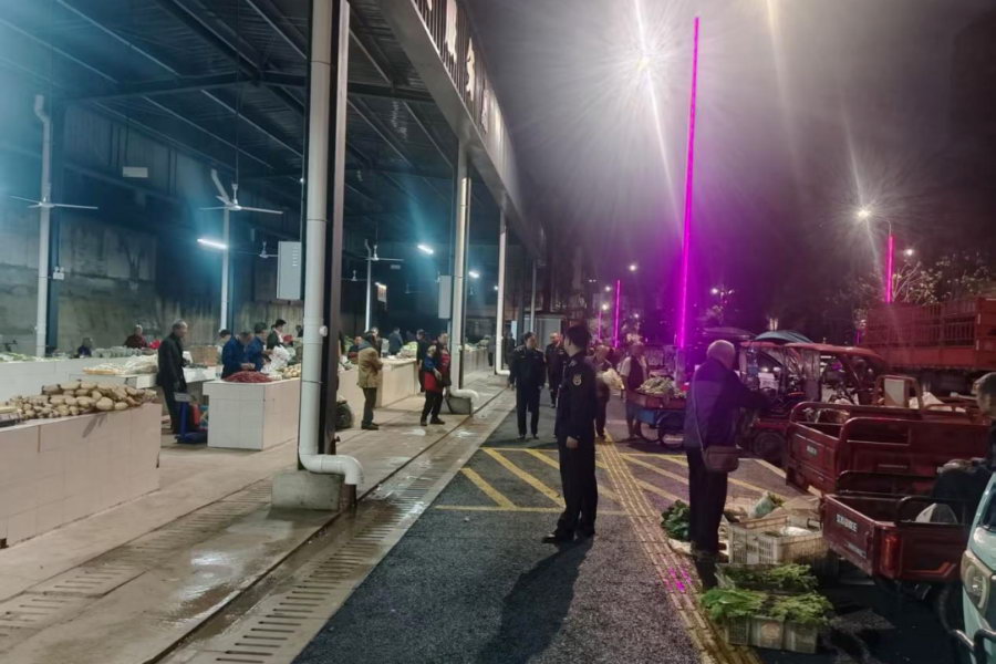走进便民服务点,科学的布局让人眼前一亮:禾苗区、蔬菜区、禽蛋区等分类清晰,专门设置的三轮车摊位停放区解决了车辆乱停的老问题,精准满足不同商贩的经营需求。为保障便民服务点有序运转,每天清晨,安居区综合行政执法局的执法队员会提前到岗,不仅引导摊贩进入指定区域经营,还主动帮年迈摊贩搬运货物,用暖心举动让执法更有温度;3名市场管理员定岗定责,实时巡查市场,及时处理纠纷、维护卫生,实现秩序与环境管理的无缝衔接。
