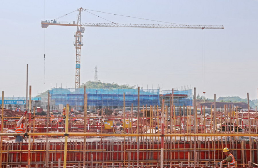 8月17日,在遂宁高新区华创新材年产10万吨高性能锂电铜箔材料项目施工现场,记者看到,260多名工人头戴安全帽,正奋战在各自的施工点位上,现场机械轰鸣,奏响了项目建设快速发展的最美“乐声”。