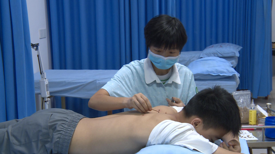 射洪市中医院治未病中心 ,医生正为患者作麦粒灸