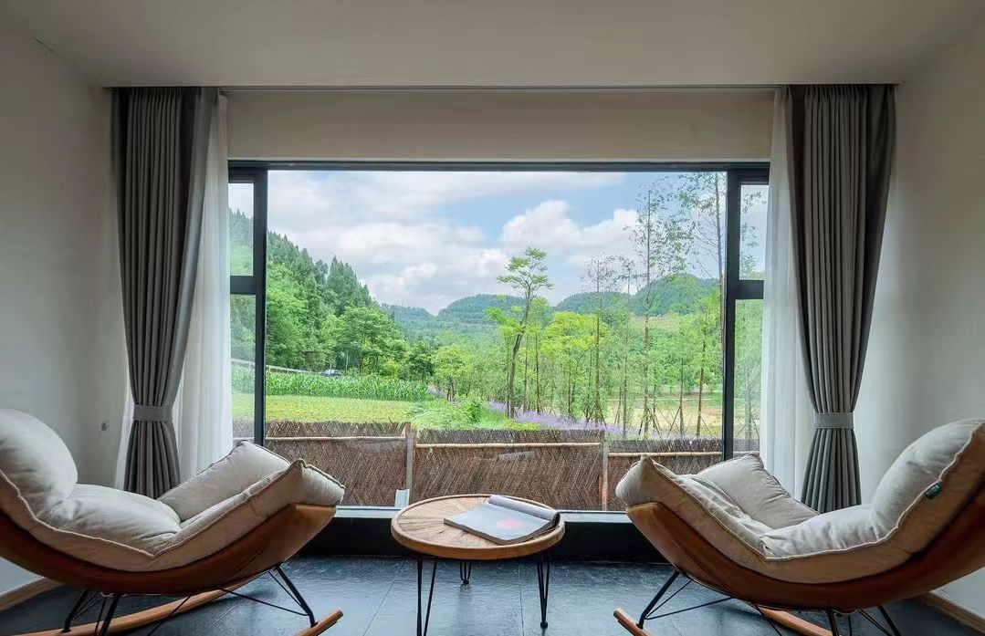遂宁市船山区凤凰村桐岸读水不同于农家乐,亦不同于星级酒店的特色客房。房间以乡野乡趣、历史文化为主题,如桐岸”“雷洞”“烟云等,既是一场与乡野的不期而遇,又是一场与传统的久别重逢。