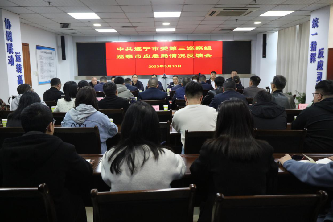 根据市委巡察工作领导小组部署,3月10日,市委第三巡察组向遂宁市应急局党委反馈巡察情况。市委第三巡察组组长王国辉主持召开向遂宁市政府副秘书长、市应急局党委书记、局长宋建军的反馈会议,会议反馈了巡察意见并传达了市委巡察工作领导小组会议和书记专题会议有关精神。随后,宋建军主持召开了巡察反馈大会,王国辉向市应急管理局党委领导班子通报了巡察反馈意见,市委巡察工作领导小组成员、市委组织部常务副部长潘化荣受市委巡察工作领导小组委托,对抓好巡察整改工作提出了要求,宋建军就巡察整改作表态发言。