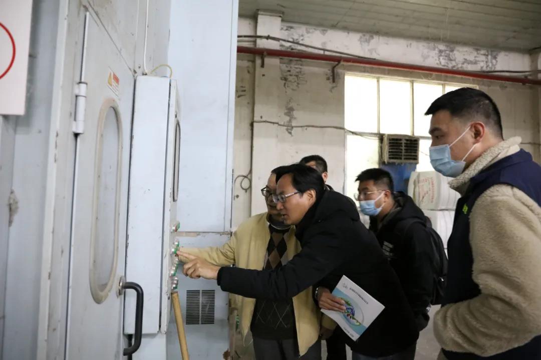 执法检查前,与企业主要负责人、安全管理人员、岗位操作员工召开了执法检查启动会。执法启动会议结束后,现场检查组立即分为2个小组,分头展开检查。一组检查企业的安全教育培训、日常安全隐患排查整改、相关人员从业资格、应急预案备案及演练等相关资料。另一组由专家和执法人员共同参加,在企业负责人陪同下检查生产现场,按照“粉尘涉爆6项”和“有限空间4项”的检查要点深入企业纺织车间、织布车间,检查安全生产风险管控、有限空间作业管理、安全标识等情况。