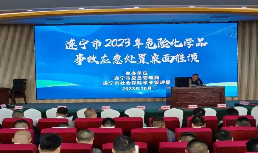 为切实提高应对各类突发事件的协同作战能力,进一步提升全市危险化学品领域从业人员工伤预防意识和能力。10月19日,遂宁市2023年危险化学品事故应急处置桌面推演在四川职业技术学院锂电科技学院举行。市应急管理局、市社保局相关负责人,各县(市、区)、市直园区应急管理(分)局分管负责人、危化股负责人及20余家危险化学品企业参加桌面推演。